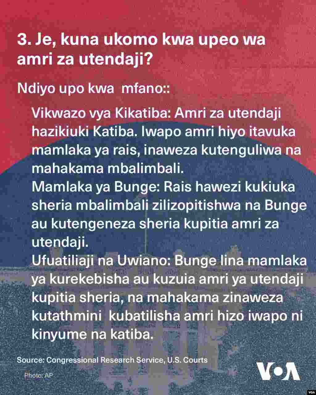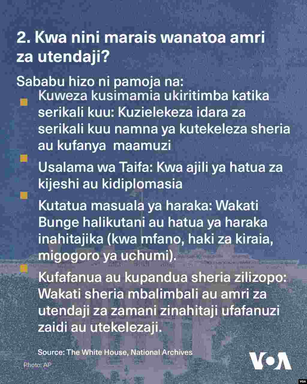 Amri za Utendaji zinatumika kutoa maelekezo idara za serikali, kuweka sera, au kuchukua hatua kuhusiana na