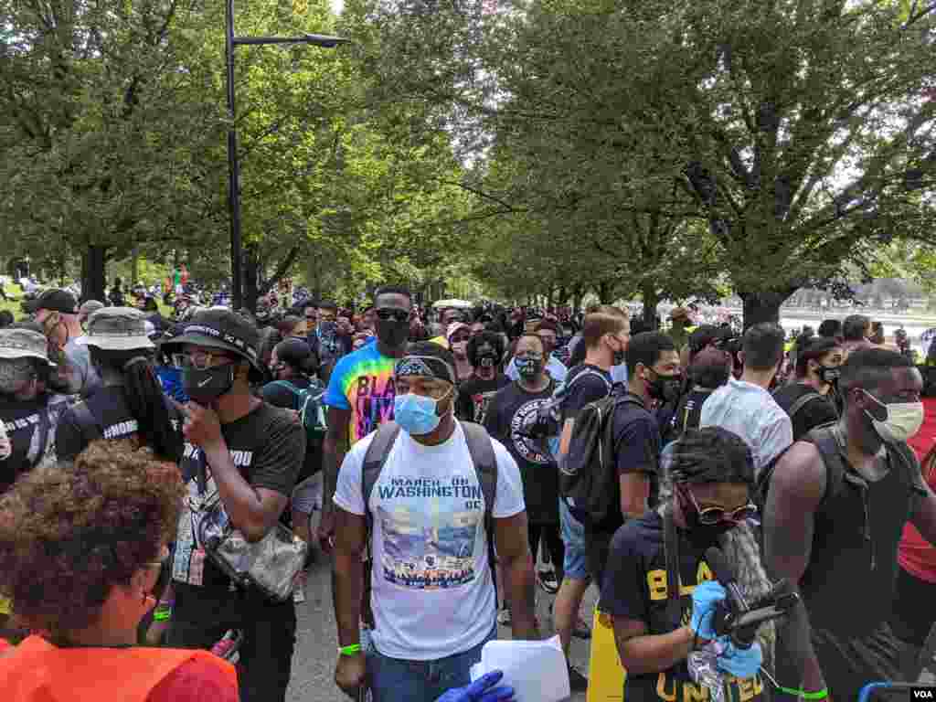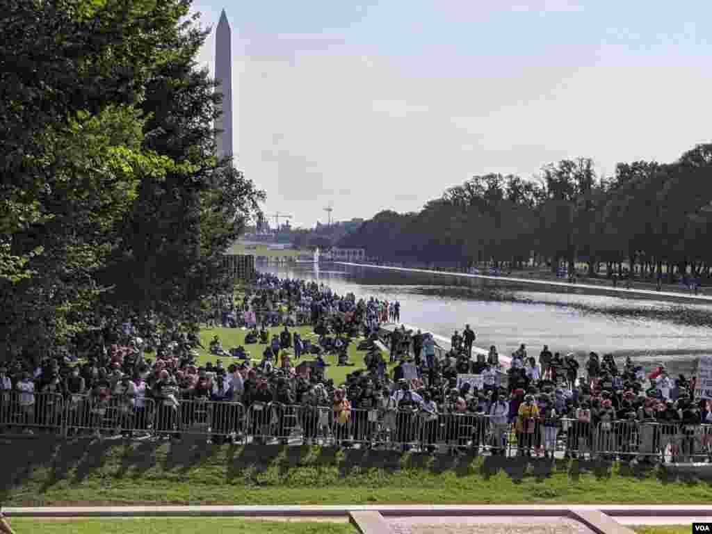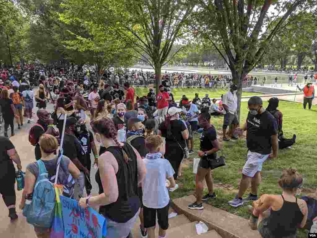 Maandamano kuadhimisha miaka 57 tangu kufanyika maandamano ya kihistoria kutetea haki za kiraia Marekani, ambapo kiongozi wa kutetea haki za kiraia Dkt Martin Luther King Jr. alitoa hotuba mashuhuri ya "I Have a Dream" katika uwanja wa Lincoln Memorial, Washington, DC, Ijumaa Agosti 28, 2020.